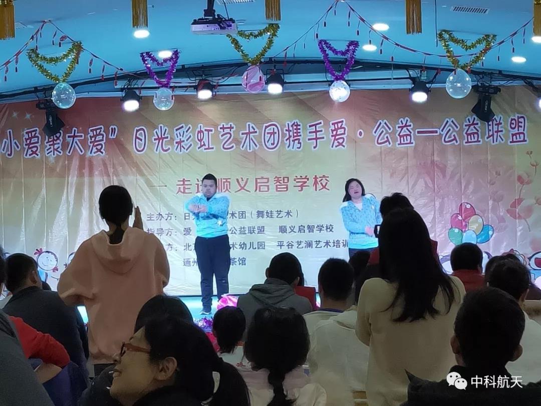 中科公司愛·公益小分隊的成員們首先與啟智學校的孩子們共同觀看了愛·公益聯(lián)盟攜手日光彩虹藝術團以“小愛聚大愛”為主題的公益演出,同時與孩子們開展了互動游戲并向孩子們分發(fā)了帶去的禮物。