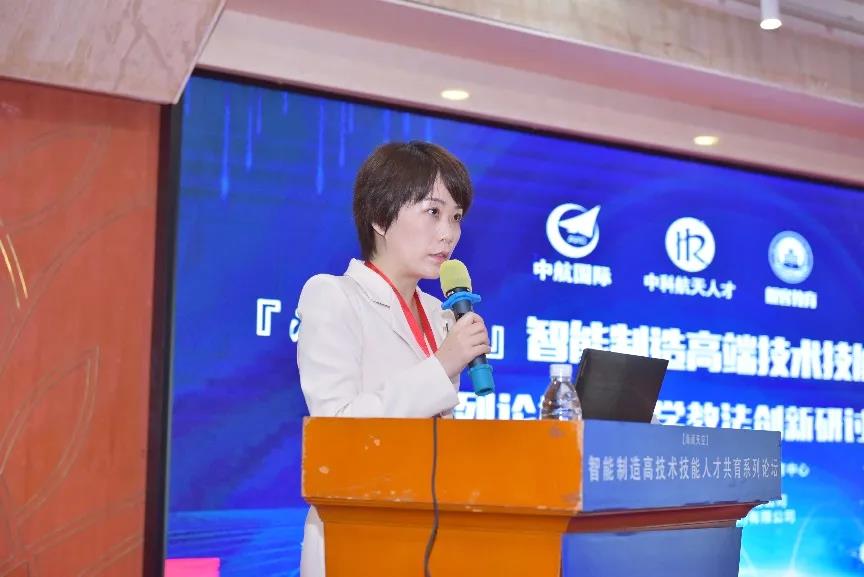 會(huì)上,來(lái)自北京工業(yè)職業(yè)技術(shù)學(xué)院機(jī)電工程學(xué)院的張春芝院長(zhǎng)、中航國(guó)際航空發(fā)展有限公司智能制造事業(yè)部商務(wù)保障處的李菁卓處長(zhǎng)、溫州職業(yè)技術(shù)學(xué)院教授,浙江省輕工機(jī)械技術(shù)創(chuàng)新服務(wù)平臺(tái)副主任、首批國(guó)家級(jí)職業(yè)教育電氣自動(dòng)化技術(shù)專(zhuān)業(yè)教學(xué)創(chuàng)新團(tuán)隊(duì)主要負(fù)責(zé)人蘇紹興老師,分別圍繞“1+X智能產(chǎn)線控制與運(yùn)維證書(shū)“、“1+X 航空柔性加工生產(chǎn)線管控與操作證書(shū)”、“1+X 智能配電集成與運(yùn)維證書(shū)”的標(biāo)準(zhǔn)及試點(diǎn)工作做了詳盡的說(shuō)明,并強(qiáng)化了證書(shū)的互通互認(rèn)。來(lái)自中船艦客教育科技(北京)有限公司新工科專(zhuān)業(yè)部的李海霞部長(zhǎng),圍繞智能制造教學(xué)創(chuàng)新設(shè)計(jì)思路作專(zhuān)題報(bào)告,現(xiàn)場(chǎng)反響熱烈。