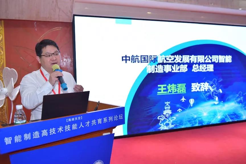 中航國(guó)際航空發(fā)展有限公司智能制造事業(yè)部總經(jīng)理王煒磊在致辭中強(qiáng)調(diào),作為國(guó)內(nèi)軍工行業(yè)航空智能制造領(lǐng)軍企業(yè),有強(qiáng)烈意愿利用自身技術(shù)專(zhuān)長(zhǎng)及多年實(shí)踐人才培養(yǎng)的經(jīng)驗(yàn)優(yōu)勢(shì),通過(guò)1+X證書(shū)的引導(dǎo),幫助學(xué)校提高教師隊(duì)伍治學(xué)施教能力、實(shí)踐能力,配合做好實(shí)訓(xùn)基地建設(shè)和實(shí)訓(xùn)設(shè)備更新?lián)Q代,同時(shí)幫助學(xué)生強(qiáng)化職業(yè)技術(shù)技能水平,解決目前軍工行業(yè)柔性加工技術(shù)技能人才培養(yǎng)的短板。