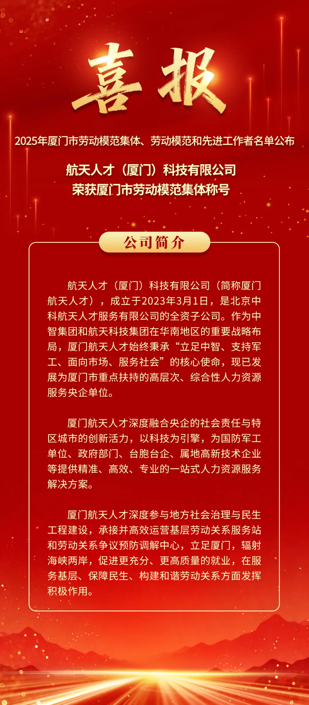 喜報!廈門航天人才榮獲廈門市勞動模范集體稱號