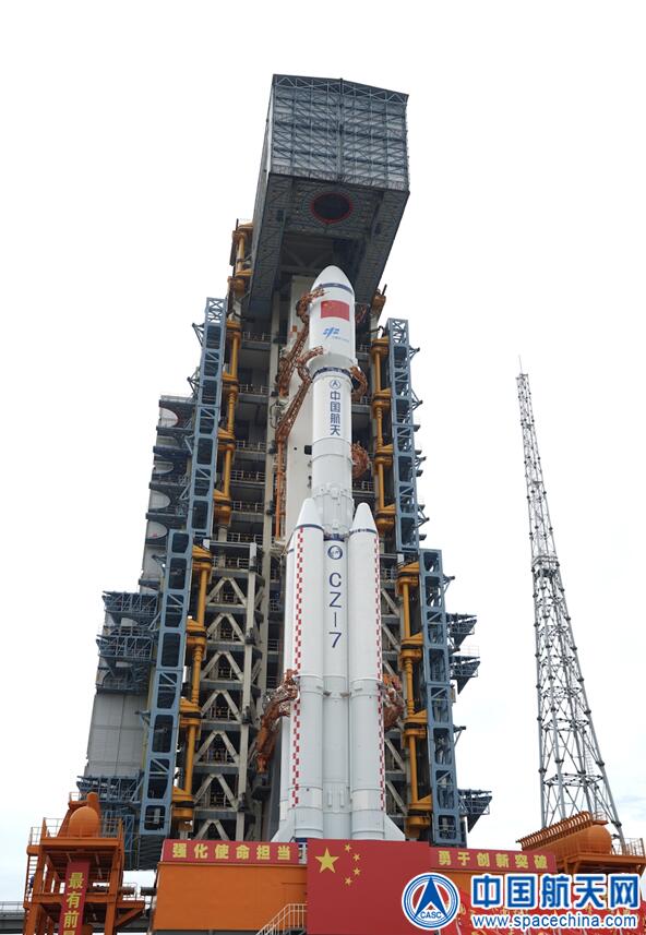 長(zhǎng)征七號(hào)火箭蓄勢(shì)待發(fā)(吳桐小雨 攝)