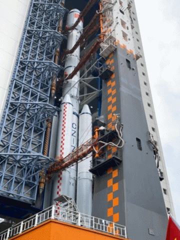 活動(dòng)發(fā)射平臺(tái)承載著長(zhǎng)七A火箭駛向發(fā)射區(qū)(劉巖 攝)